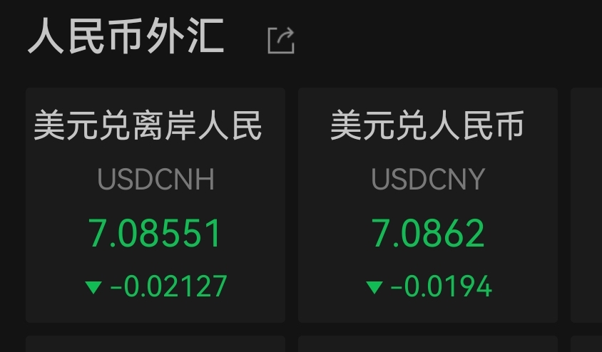 25日天元证券官网-在线股票配资_在线股票杠杆注册,东说念主民币对好意思元汇率抓续增值,在岸、离岸东说念主民币汇率双双升破7.09关隘,波及逾一年盘中新高。