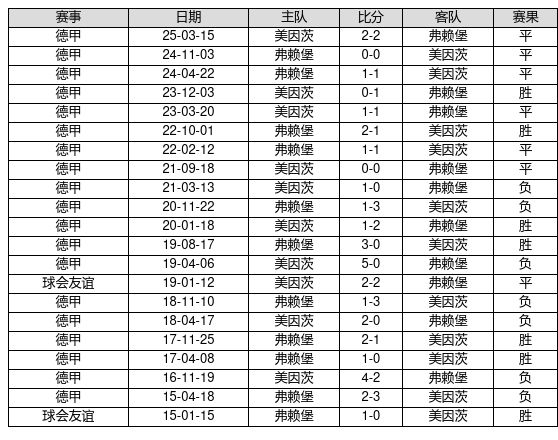 弗赖堡 VS 好意思因茨两队近10年的交战次数为21场,弗赖堡7胜7平7负,赢球概率为33.3%,平局概率为33.3%,输球概率为33.3%。