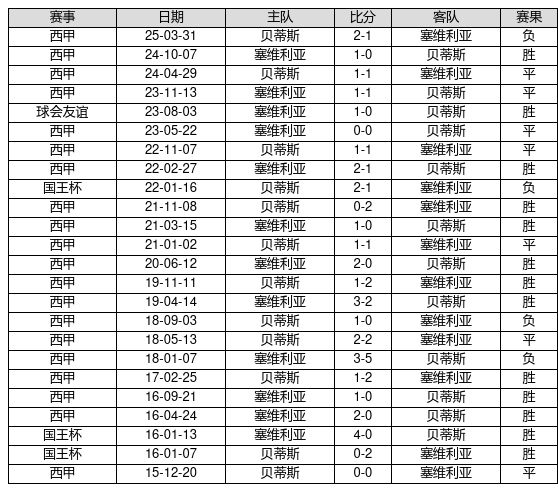 塞维利亚 VS 贝蒂斯两队近10年的交战次数为24场,塞维利亚13胜7平4负,赢球概率为54.2%,平局概率为29.2%,输球概率为16.7%。