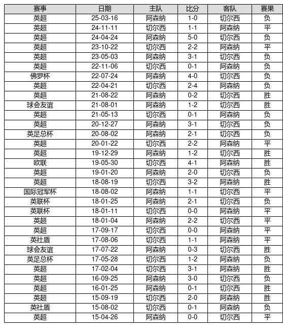 切尔西 VS 阿森纳两队近10年的交战次数为32场,切尔西9胜9平14负,赢球概率为28.1%,平局概率为28.1%,输球概率为43.8%。