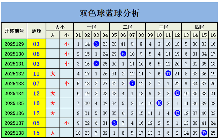 最近10期蓝球开出号码,四区比为:2:3:4:1,上期开出四区号,本期存眷四区出号。保举号码:13